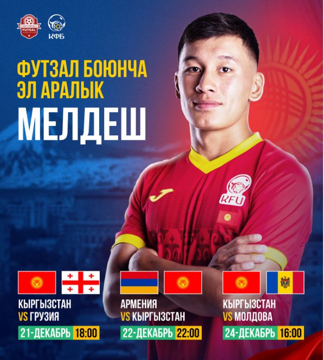 Сборная Кыргызстана по футзалу примет участие в международном турнире, который пройдет 21-24 декабря в Ереване. Об этом сообщает ассоциация этого вида спорта в соцсетях.