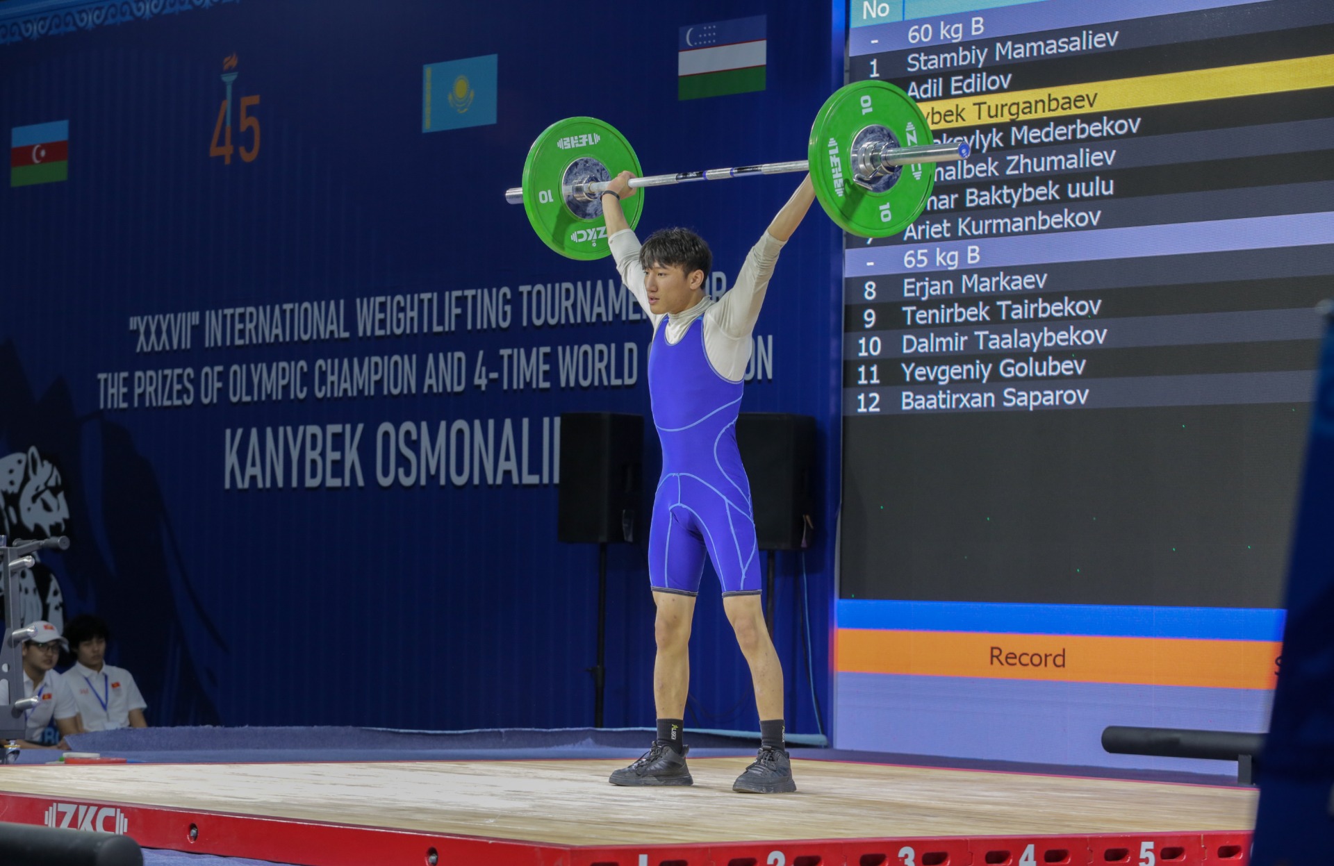 Олимпийский чемпион, четырехкратный чемпион мира по тяжелой атлетике Каныбек Осмоналиев также принял участие в церемонии открытия турнира.