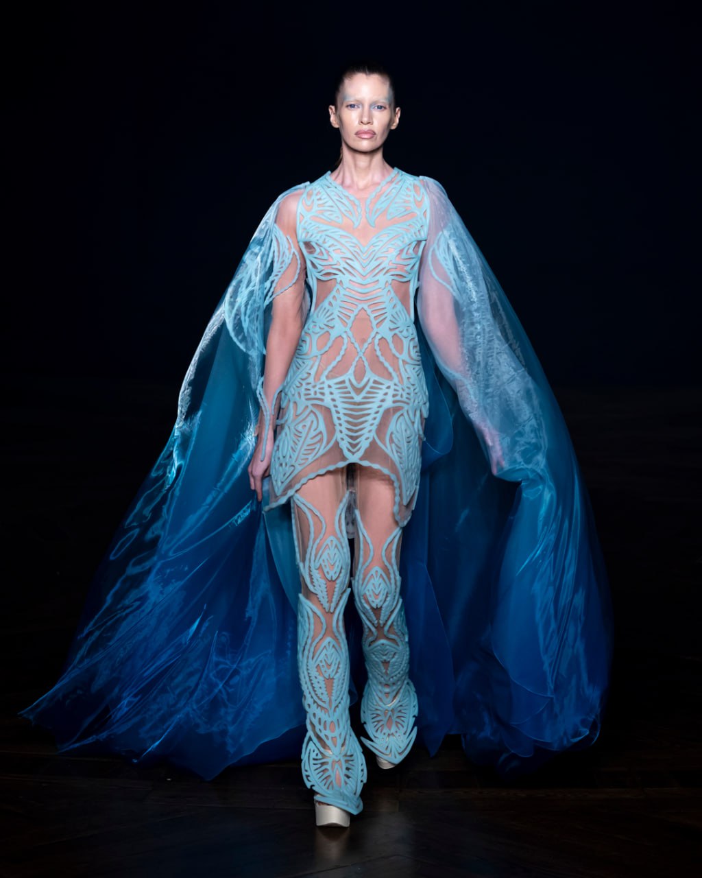 Сообщается, что на дефиле, которое состоялось в рамках Недели высокой моды в Париже, показали платье из 125 миллионов одноклеточных водорослей. При движении или изменении условий среды платье начинает светиться синим цветом. В проекте принимали участие не только сотрудники марки, но и ученые из Университета Амстердама и Института Фрэнсиса Крика.