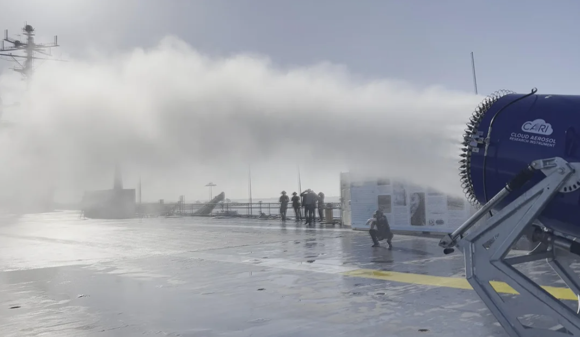 Эксперимент стартовал в апреле 2024 года в городе Аламеда — на палубе списанного авианосца USS Hornet, ныне превращенного в музей. Исследователи из Университета Вашингтона в сотрудничестве с некоммерческой организацией SilverLining распыляли частицы морской соли, чтобы сделать облака более отражающими и снизить поступление солнечных лучей на поверхность Земли.