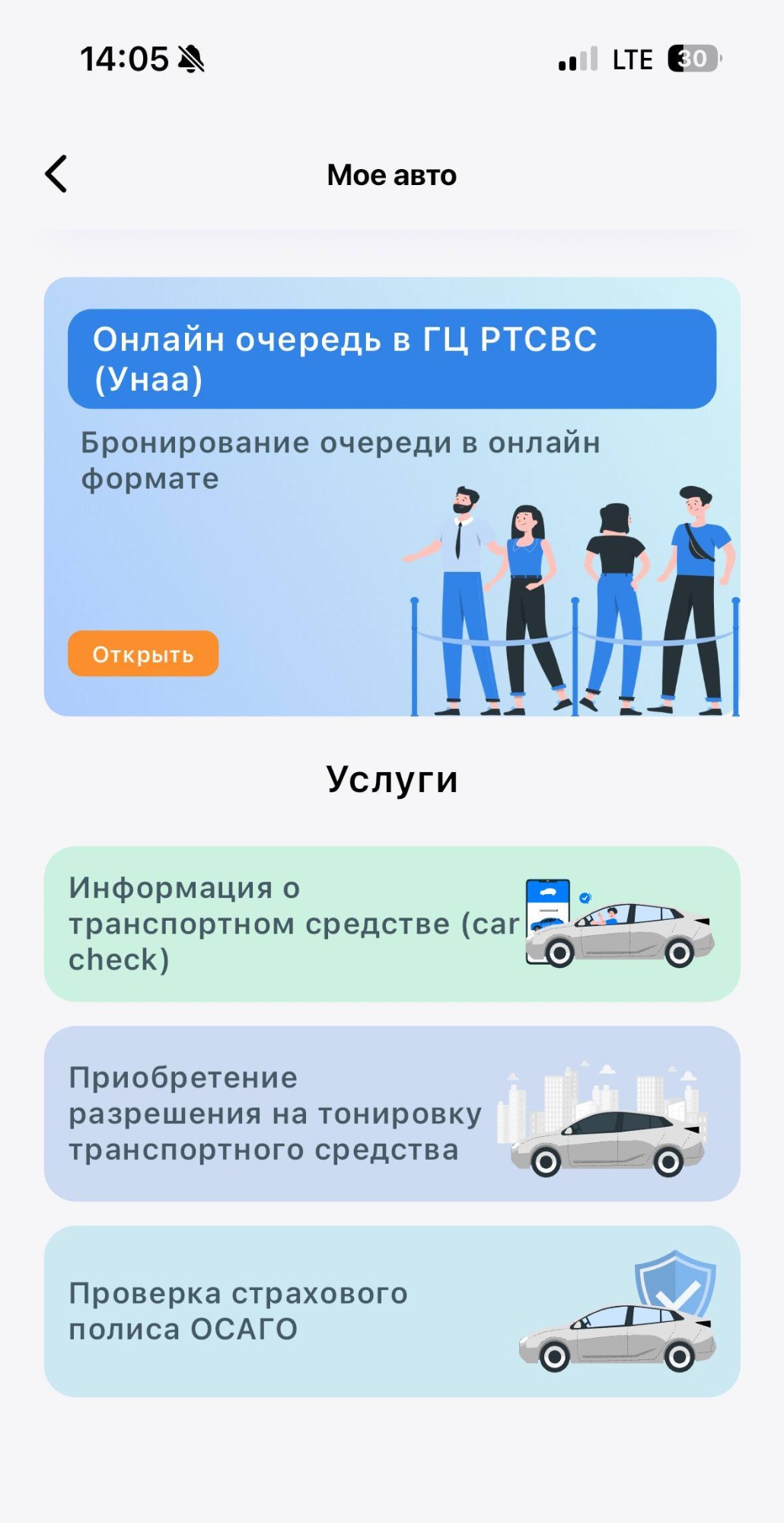 Расширение бронирования. Онлайн-бронирование очереди теперь доступно не только для центров обслуживания населения (ЦОН), но и для Государственного центра регистрации транспортных средств и водительского состава (ГЦ РТСВС, бывшее «Унаа») и «Кадастра».