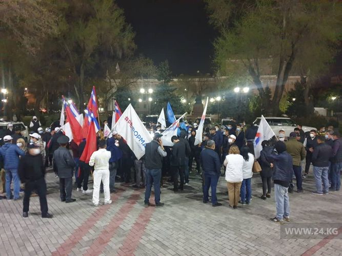 В акции протеста участвуют около 50 человек, это представители партий «Социал-демократы Кыргызстана», «Реформа», «Тынчтык», «Улутман». Присоединились также Кыргызская социалистическая партия и «коммунисты».