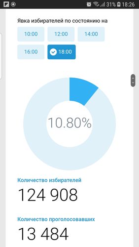 На 18.00, по данным ЦИК, проголосовали всего 10,8 процента, что составляет 13 тысяч 484 человека из 124 тысяч 980 избирателей.