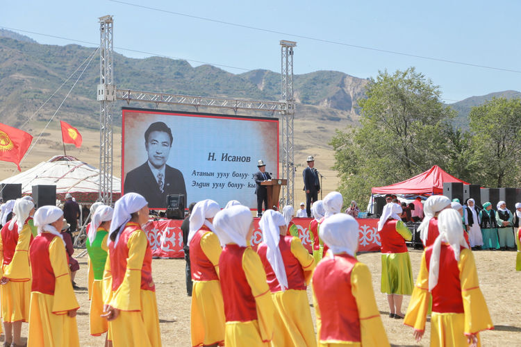 Мероприятие проходит в Ноокатском районе Ошской области в рамках празднования Дня независимости. Глава кабмина поздравил собравшихся с Днем независимости и напомнил о заслугах Насирдина Исанова перед кыргызским народом.