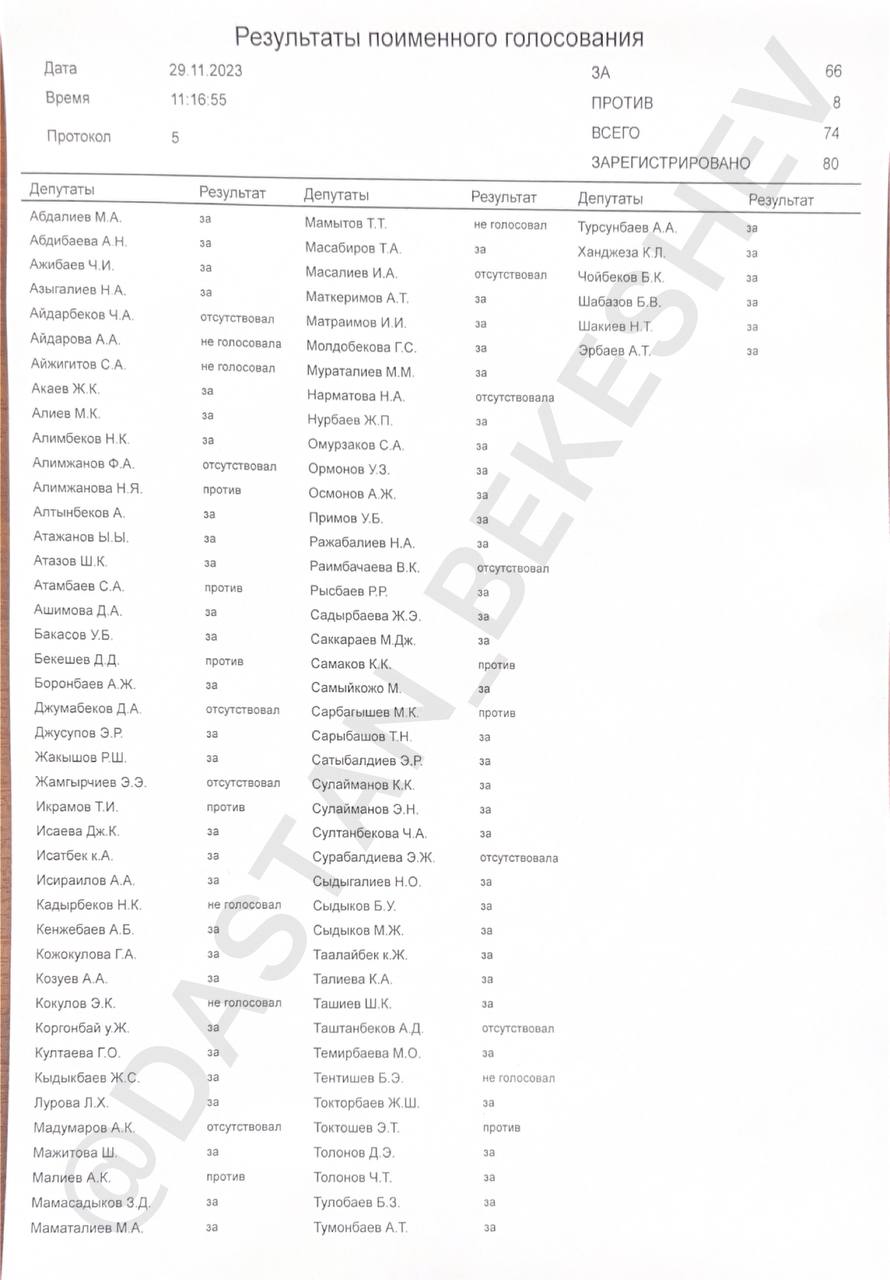 На этом заседание Жогорку Кенеша завершилось.