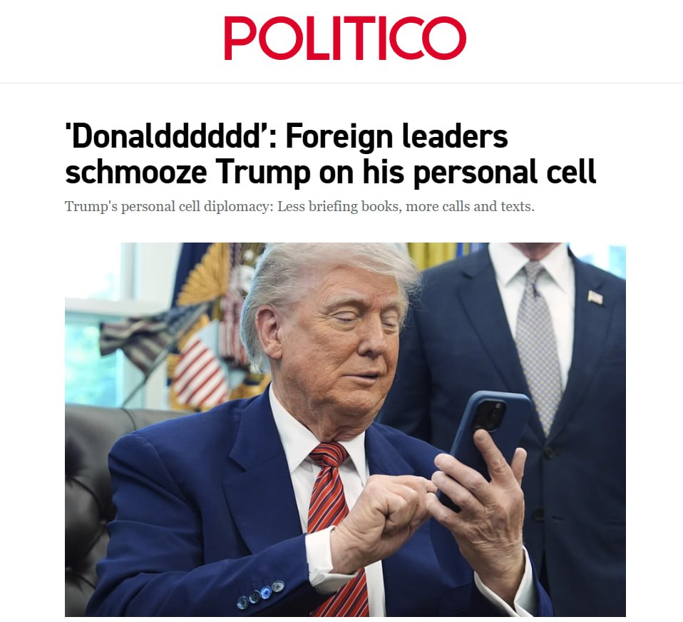 В публикации также говорится, что Дональд Трамп, как и во время первого президентского срока, нарушая дипломатические правила, делится с политиками своим личным телефонным номером и призывает их звонить ему напрямую.