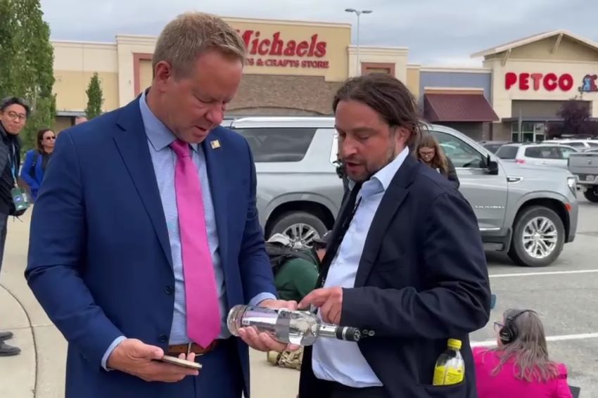 Фото СМИ. Американский журналист подарил российскому коллеге русскую водку, которую купил в магазине на Аляске