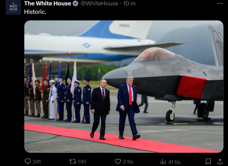 На Аляску первым прилетел борт главы Белого дома. В Анкоридже приготовили красную дорожку для встречи как Дональда Трампа, так и Владимира Путина. Президент США не выходил из самолета в ожидании лидера России.