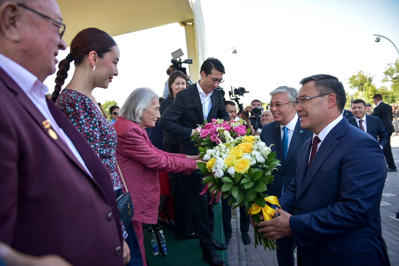 До начала официальной церемонии приветствия президент Касым-Жомарт Токаев посетил мемориальный комплекс «Ата-Бейит». Его сопровождал глава председателя кабинета министров КР Адылбек Касымалиев. Президент Казахстана возложил венок к мемориалу памяти погибших в трагических событиях 1916 года и памятнику писателю Чингизу Айтматову.