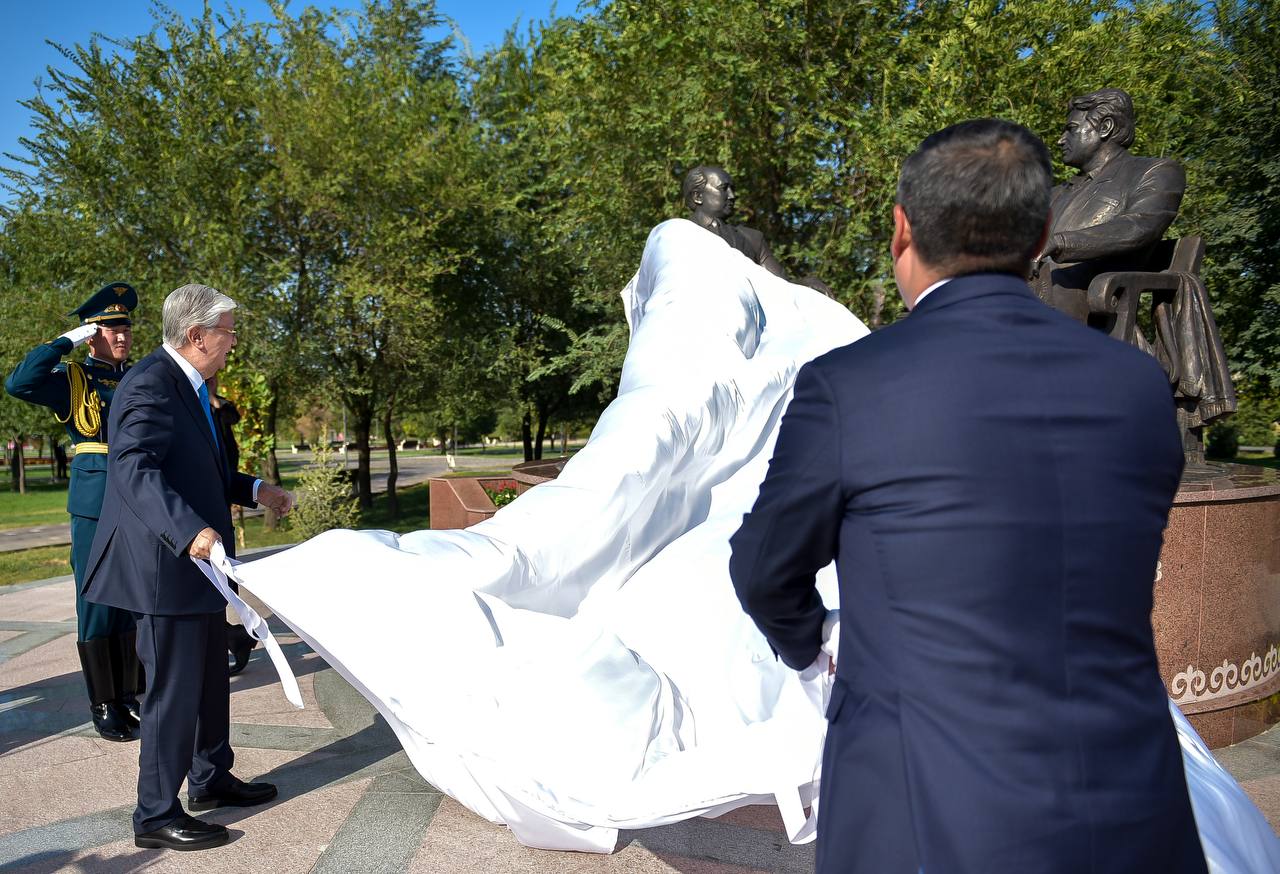 Президент КР Садыр Жапаров и президент РК Касым-Жомарт Токаев открыли памятник «Золотой мост дружбы» в городе Бишкек. Об этом сообщили в пресс-службе главы государства.Композиция посвящена народным писателям Кыргызстана Чингизу Айтматову и Казахстана Мухтару Ауэзову.