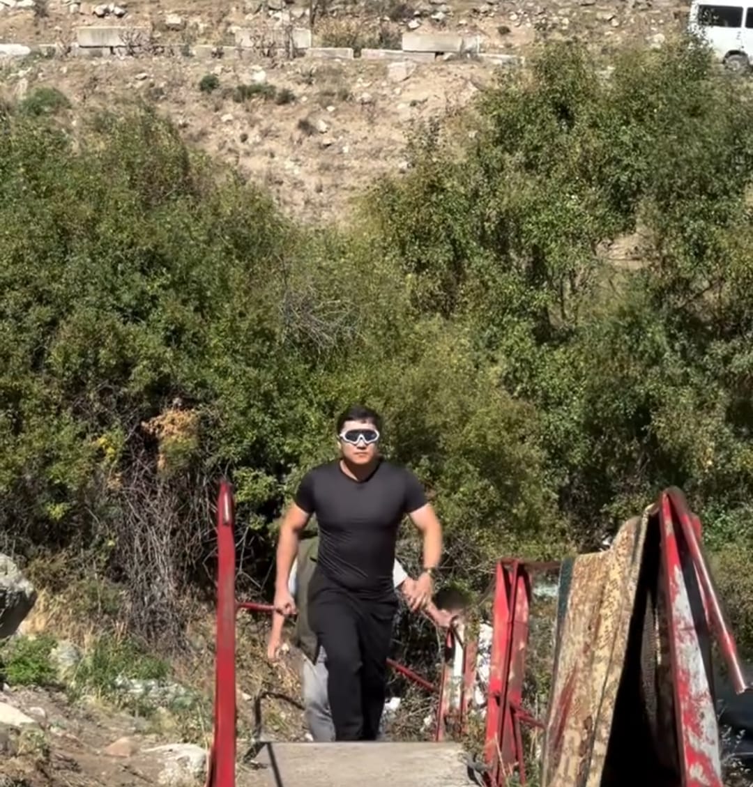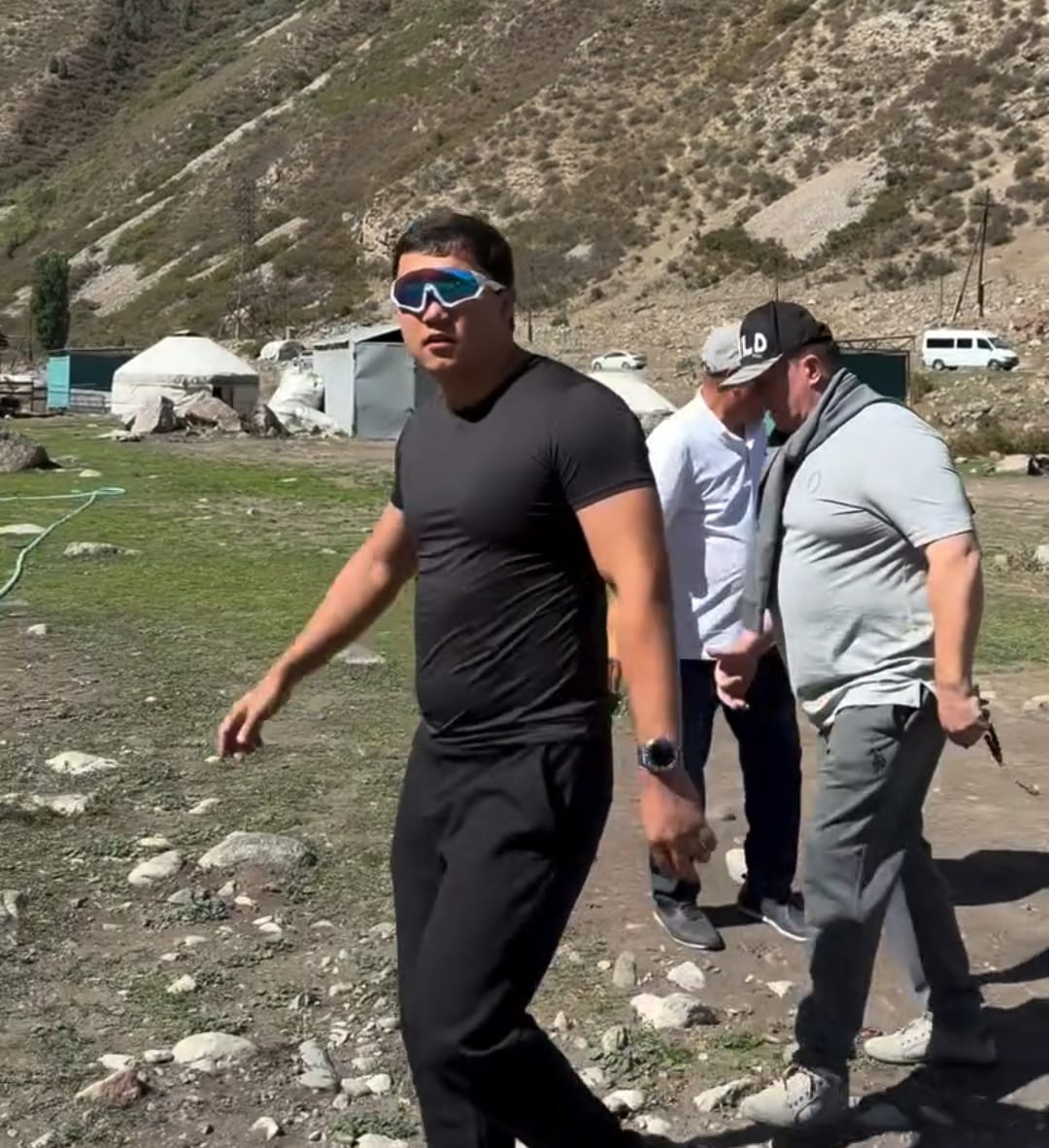 Аким Аламединского района Азамат Эргешев недавно появился во время рейда в ущелье в модных спортивных очках с белой оправой.