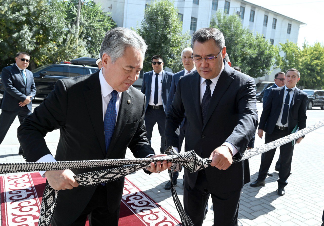 Президент Садыр Жапаров в ходе рабочей поездки в Ошскую область принял участие в церемонии открытия административного здания и Дома приемов полномочного представительства Министерства иностранных дел в Ошской, Джалал-Абадской и Баткенской областях.