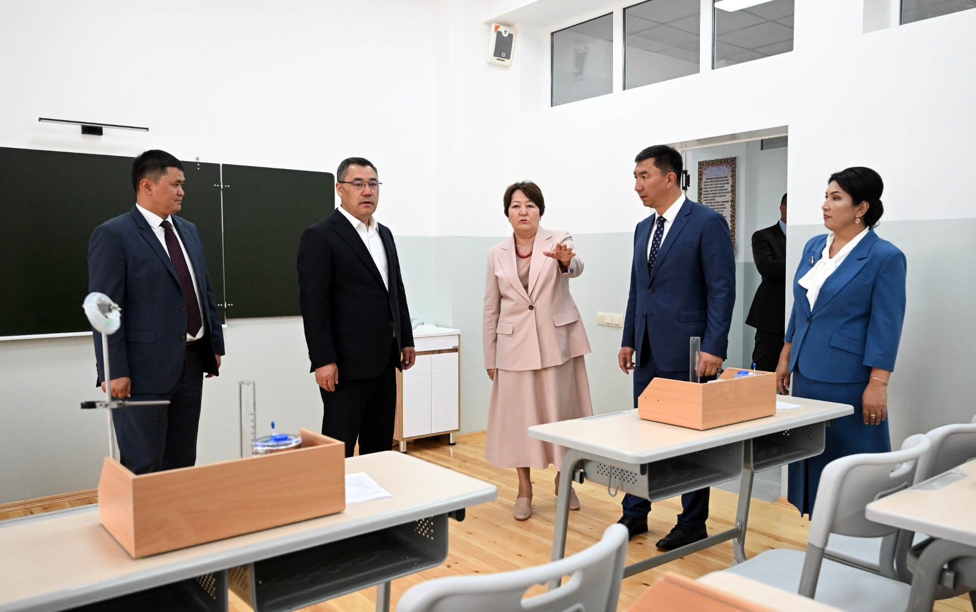 Президент Кыргызстана Садыр Жапаров открыл новое здание школы имени Нышанбая Алыкулова в селе Мин-Орук Джалал-Абадской области. Мероприятие состоялось сегодня в рамках рабочей поездки в регион, сообщает пресс-служба главы государства.