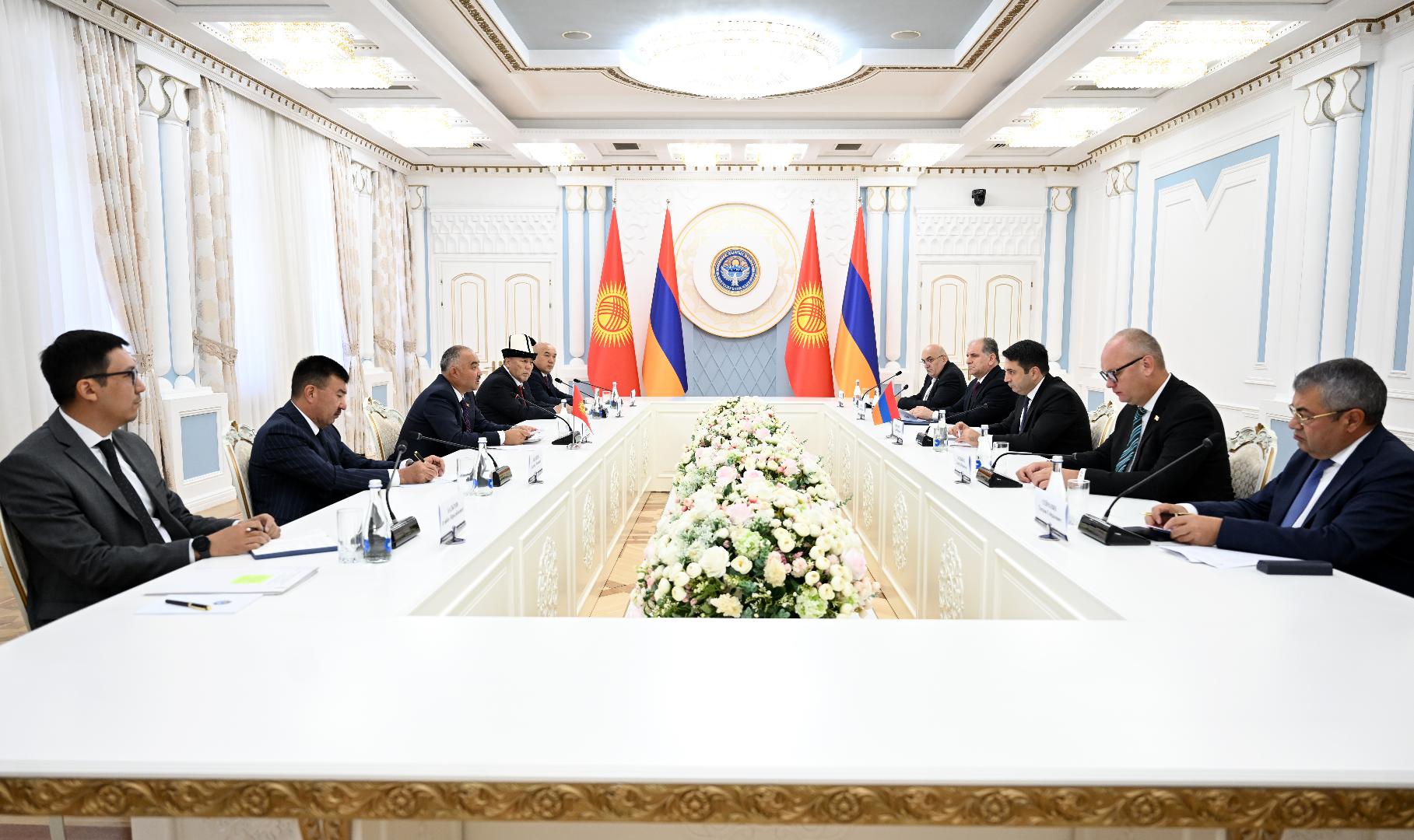 Ален Симонян вкратце рассказал о достигнутых договоренностях между Арменией и Азербайджаном и поделился своими предложениями относительно укрепления партнерства с Кыргызстаном. В частности, армянская сторона отметила заинтересованность в решении имеющихся торгово-экономических и инфраструктурных вопросов в целях расширения сотрудничества между странами.