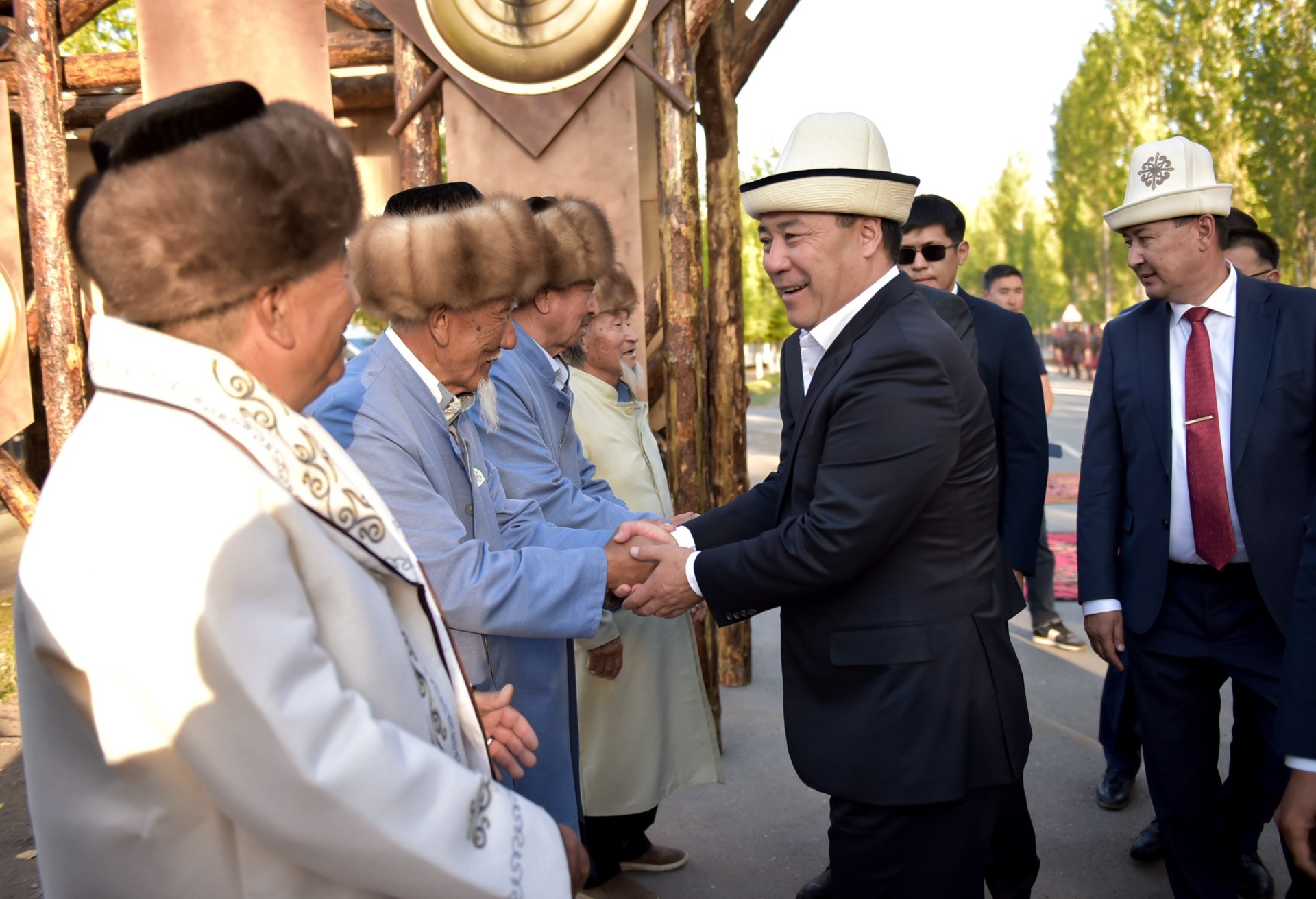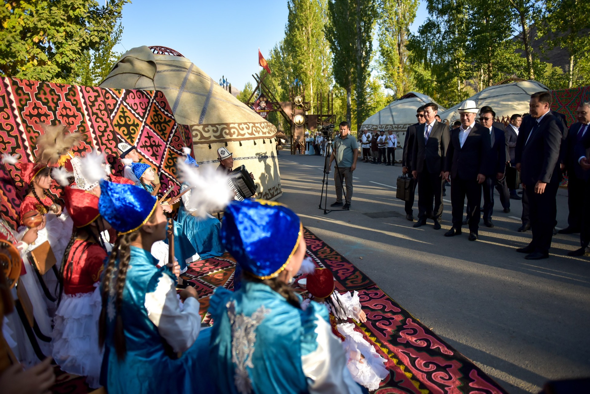 Главу государства в селе Гульча торжественно встретили 40 воинов кырк чоро, а также акыны-импровизаторы. Он ознакомился с выставкой, где представлены экспонаты национальной культуры, элементы традиционного быта и образцы современного творчества мастеров.