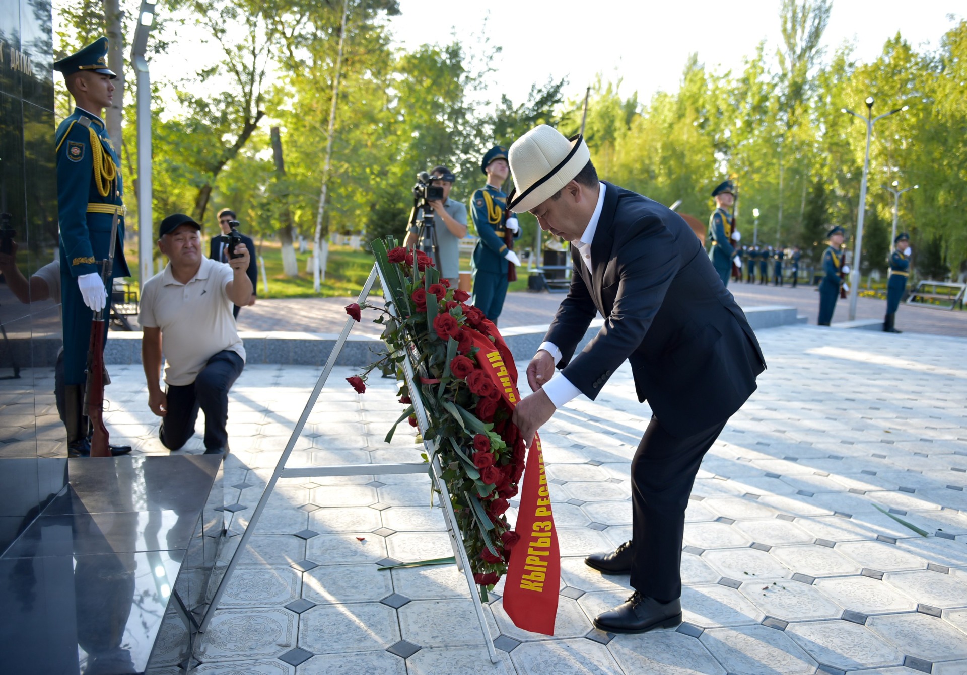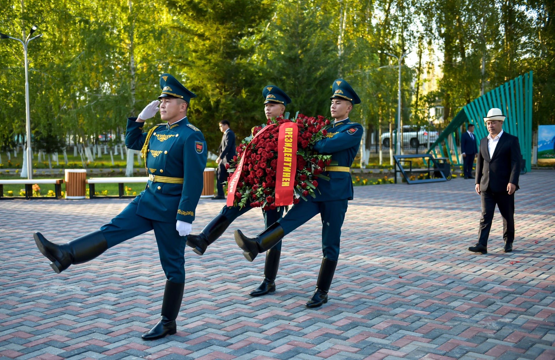 В ходе мероприятия в парке имени Алымбека датки президент возложил цветы к памятнику. Церемония прошла в сопровождении почетного караула Национальной гвардии.