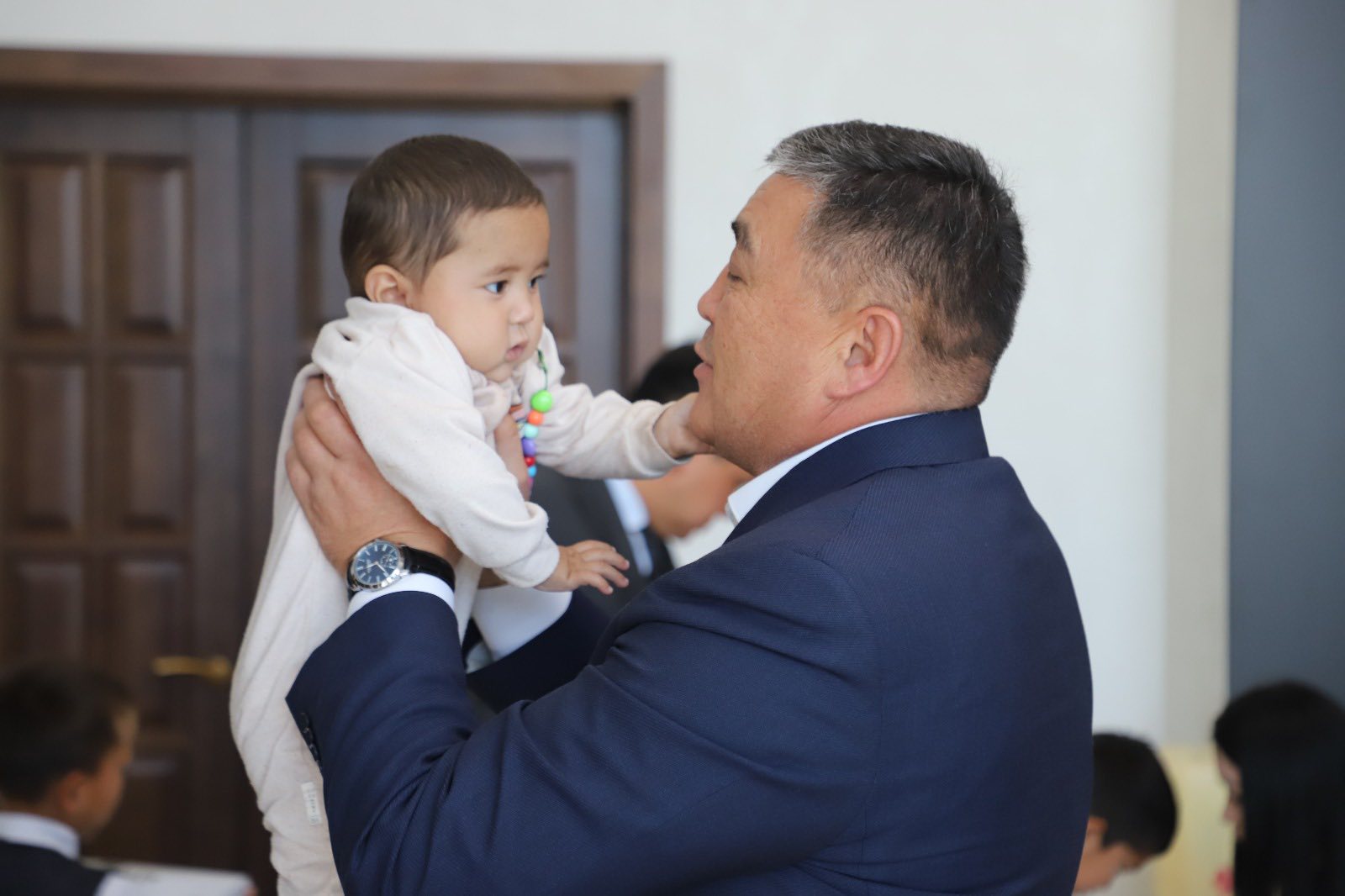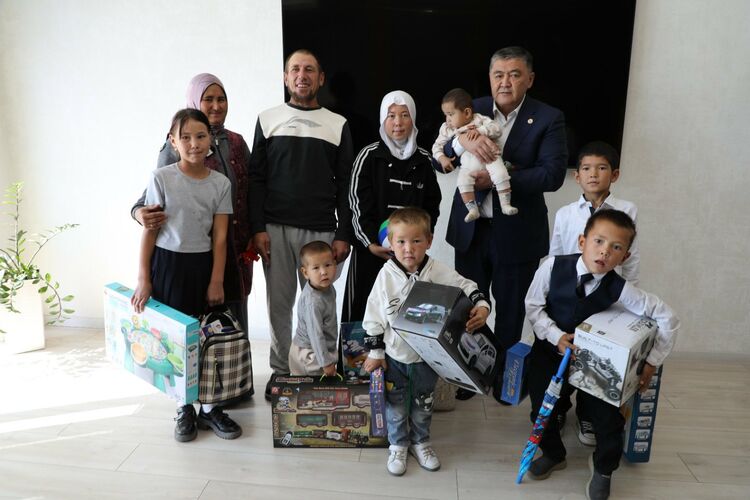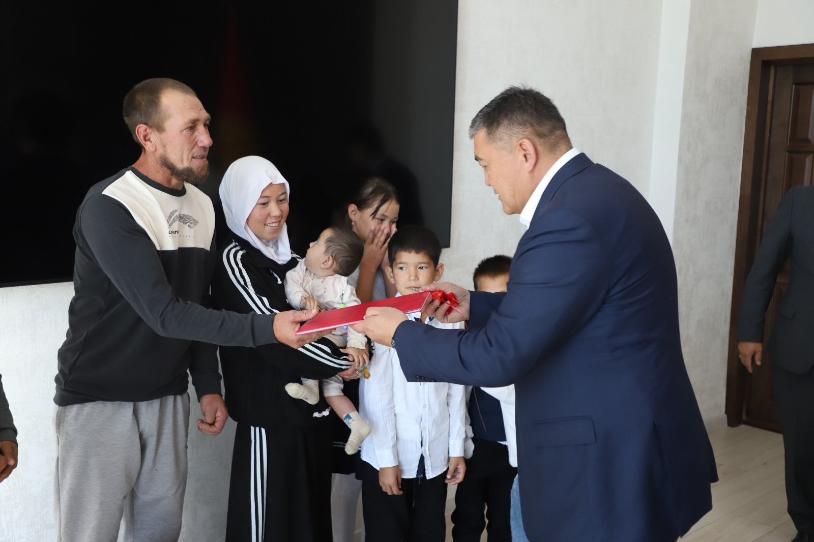 Председатель ГКНБ Камчыбек Ташиев вручил ключи от трехкомнатного дома семье с десятью детьми.
