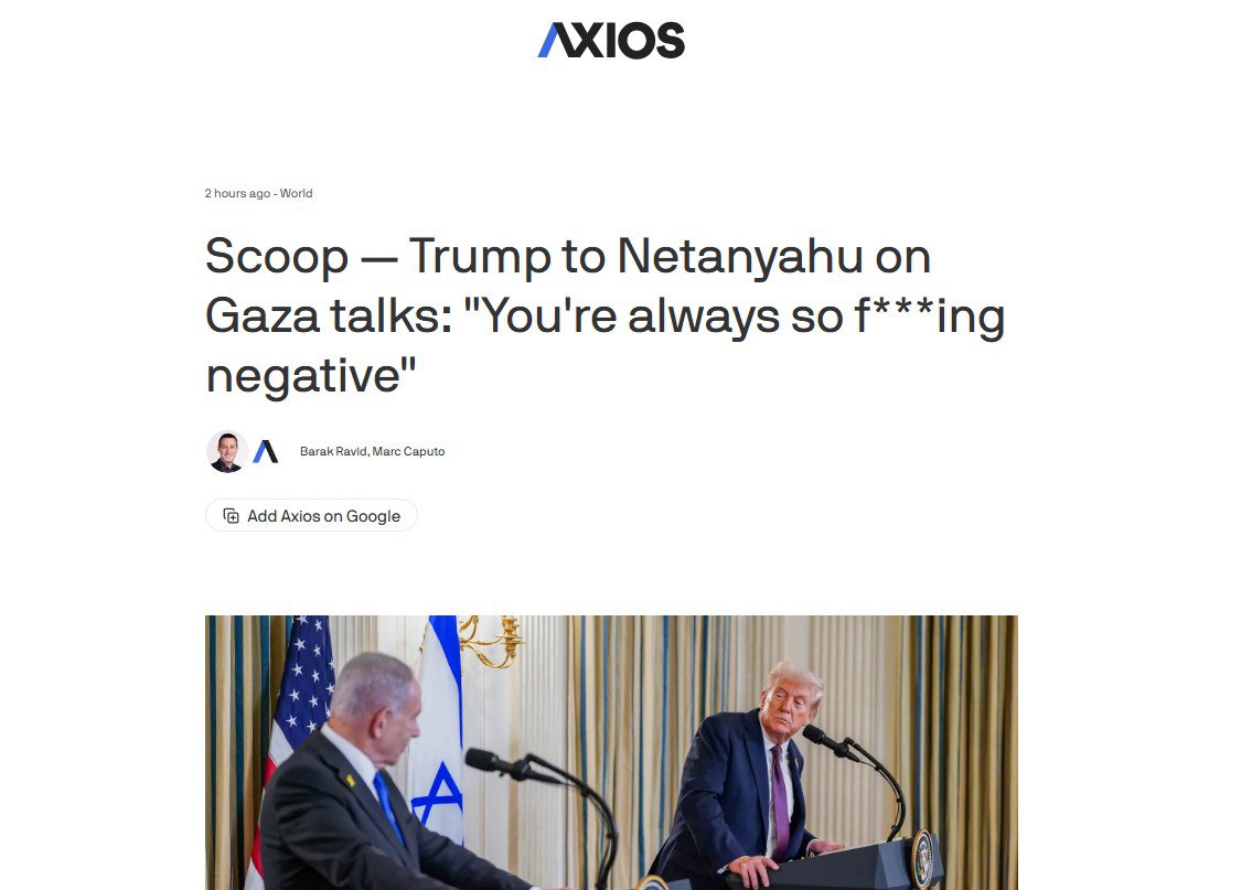Президент США нецензурно выругался в телефонном разговоре с премьер-министром Израиля Биньямином Нетаньяху, стремясь убедить его согласиться на сделку для прекращения войны в секторе Газа, утверждает Axios.