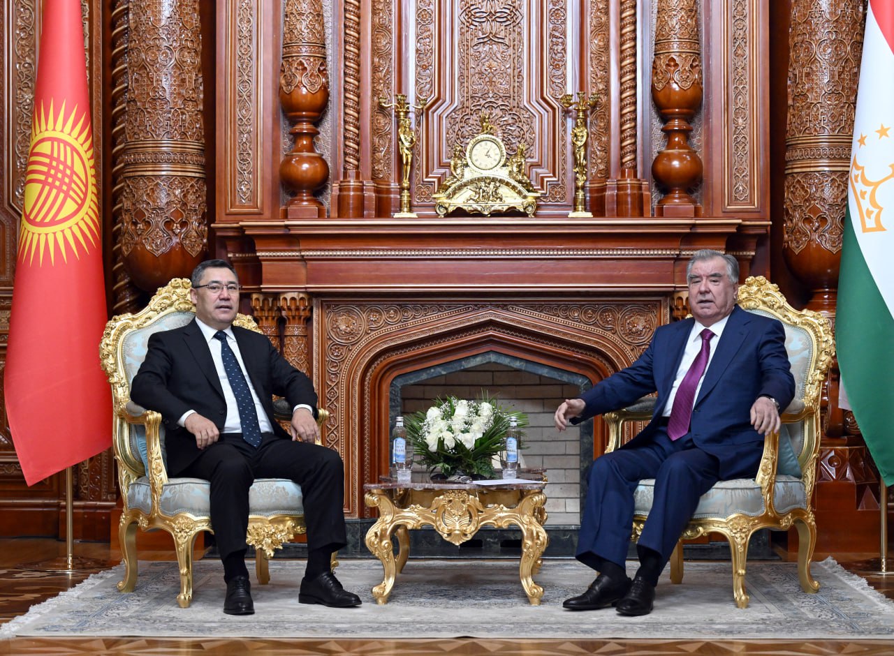 Эмомали Рахмон тепло поприветствовал Садыра Жапарова, подчеркнув позитивную динамику двустороннего сотрудничества.