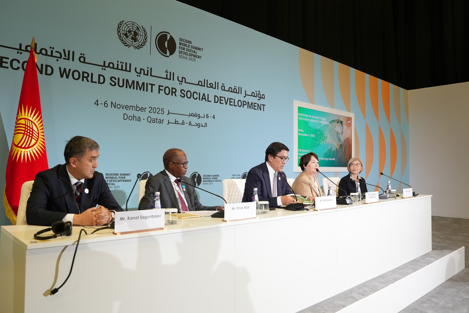 В своем обращении Эдиль Байсалов подтвердил приверженность КР к Дохинской политической декларации, подчеркнув, что реализация трех столпов социальной политики — искоренение нищеты, достойный труд и социальная инклюзивность — является основой национальной стратегии развития.