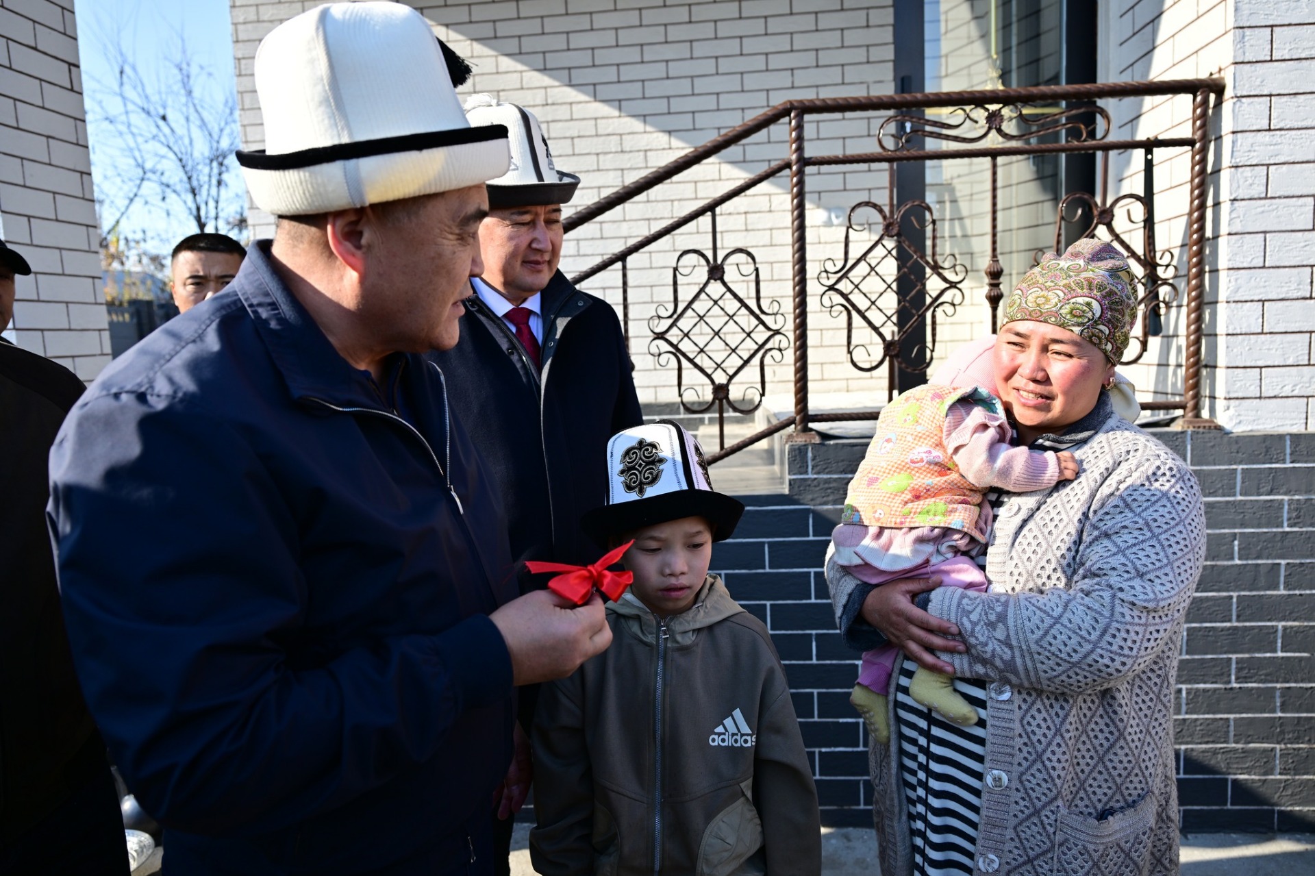 Строительство завершили через два месяца, и сегодня новые дома переданы владельцам. На церемонии вручения ключей Камчыбек Ташиев лично поздравил новых хозяев.
