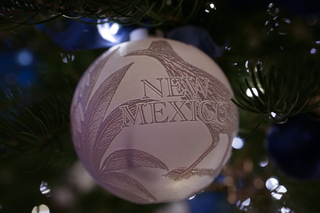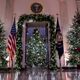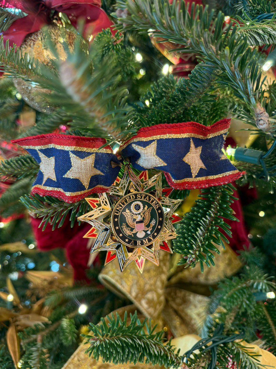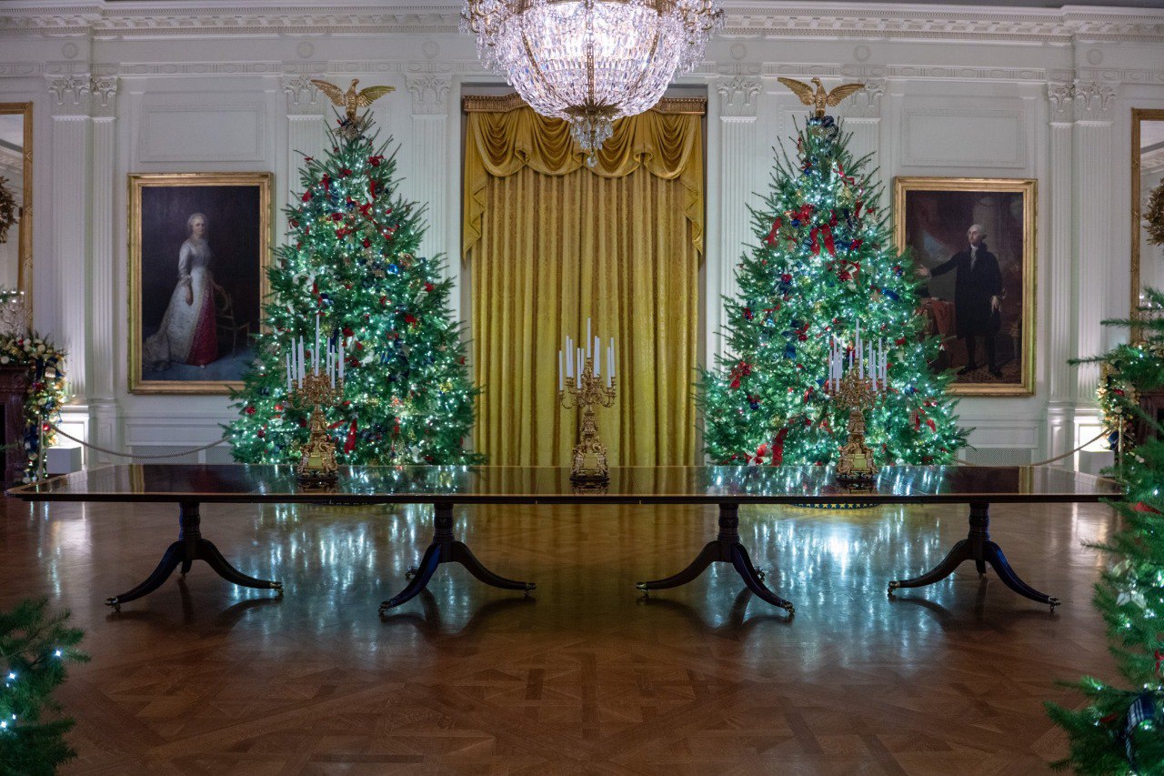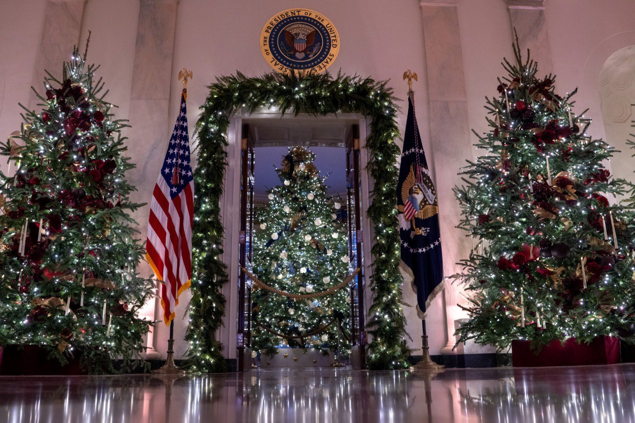 Главная рождественская елка Белого дома в Голубой комнате украшена золотыми звездами в честь семей, потерявших родных при исполнении служебных обязанностей. Традиционно официальная елка символизирует каждый штат и территорию, и в этом году на ней появились изображения официальной птицы и цветка каждого штата.
