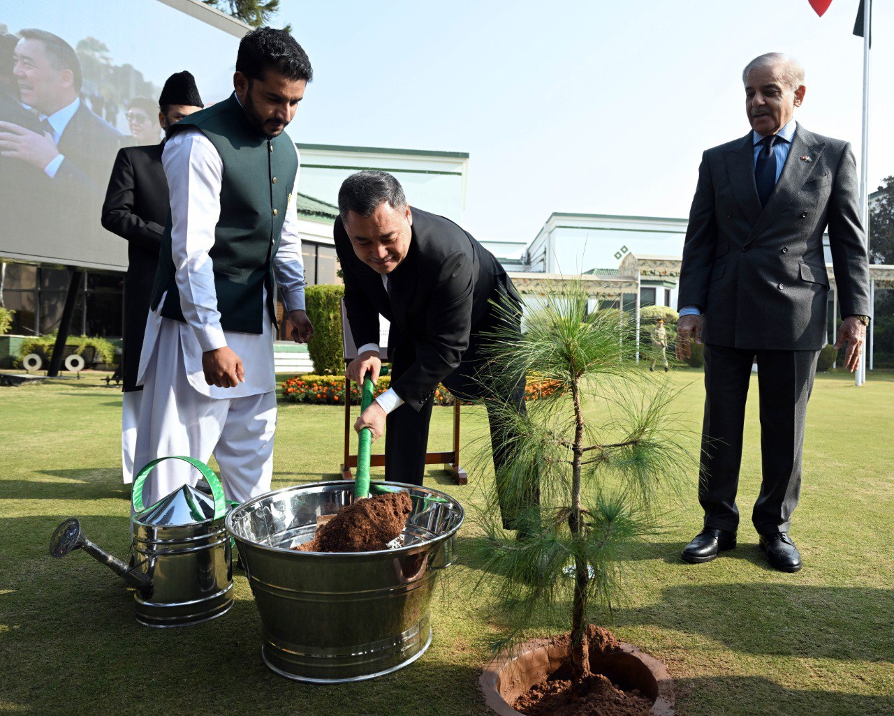 По завершении церемонии Садыр Жапаров и Шахбаз Шариф приняли участие в совместной посадке дерева — символическом жесте развития сотрудничества. После этого стороны направились в зал для проведения переговоров.