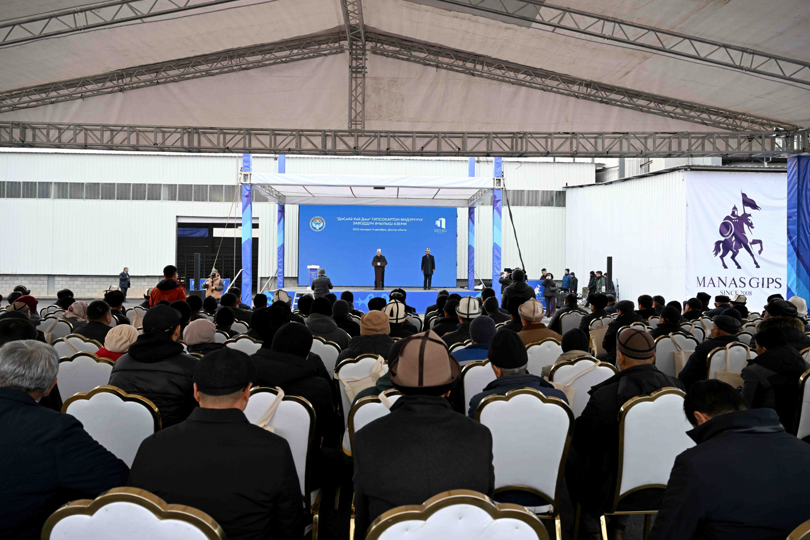 Председатель кабинета министров — руководитель администрации президента Адылбек Касымалиев в рамках рабочей поездки в Джалал-Абадскую область принял участие в церемонии открытия завода по выпуску гипсокартона в селе Достук Сузакского района.