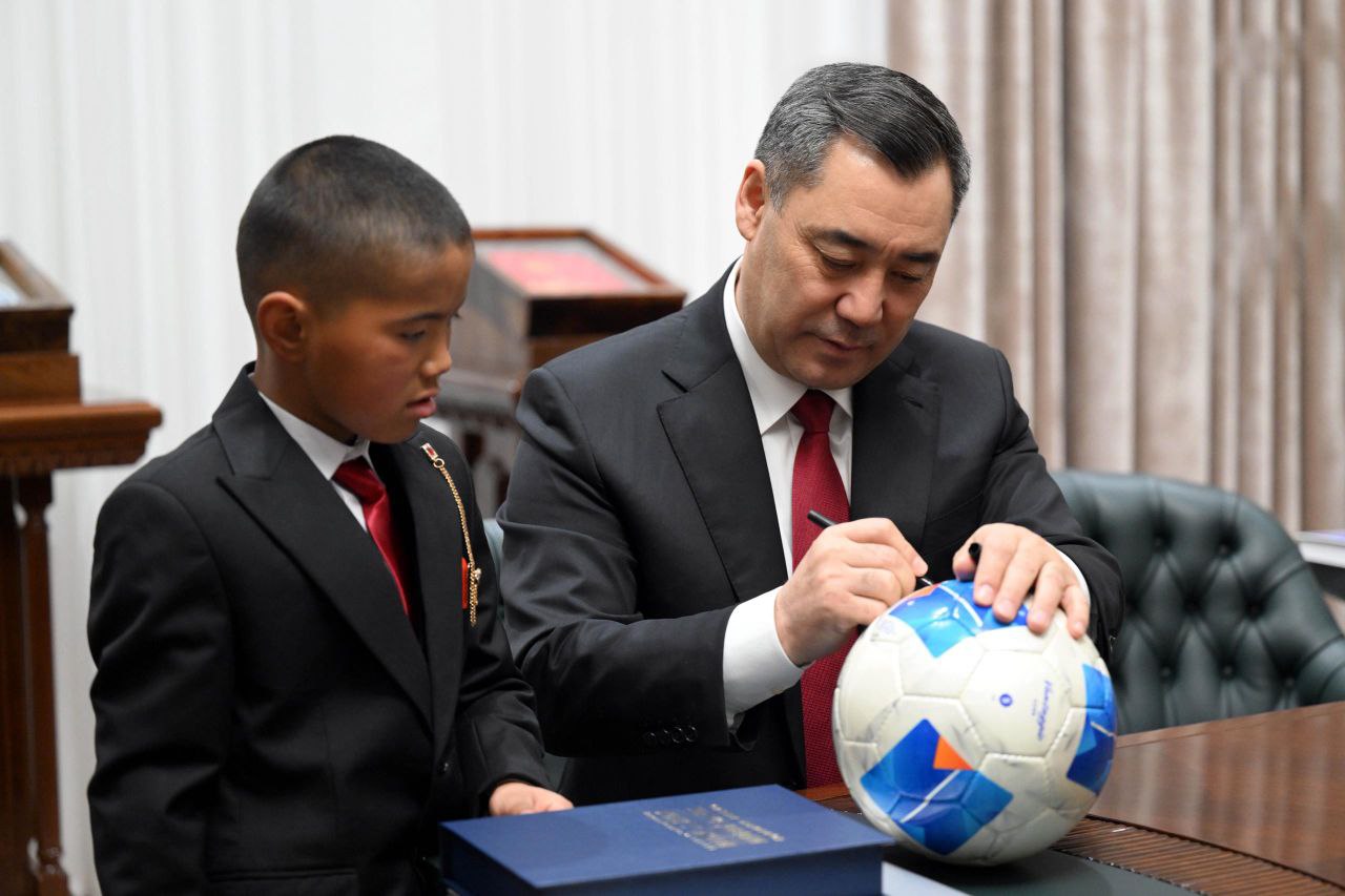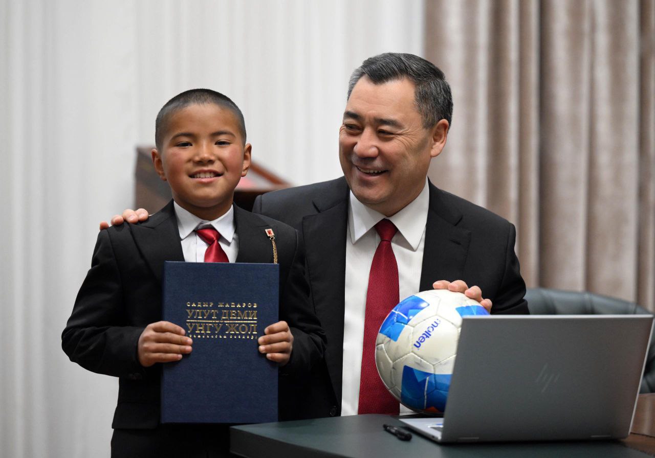 Садыр Жапаров пригласил в свой рабочий кабинет ученика 4-го класса начальной школы «Айдын-Кол» в селе Коо-Чаты Кара-Кульджинского района Ошской области Нурзамана Алмазбекова. Об этом на своей странице в Facebook написал руководитель службы информационной политики администрации президента Дайырбек Орунбеков.