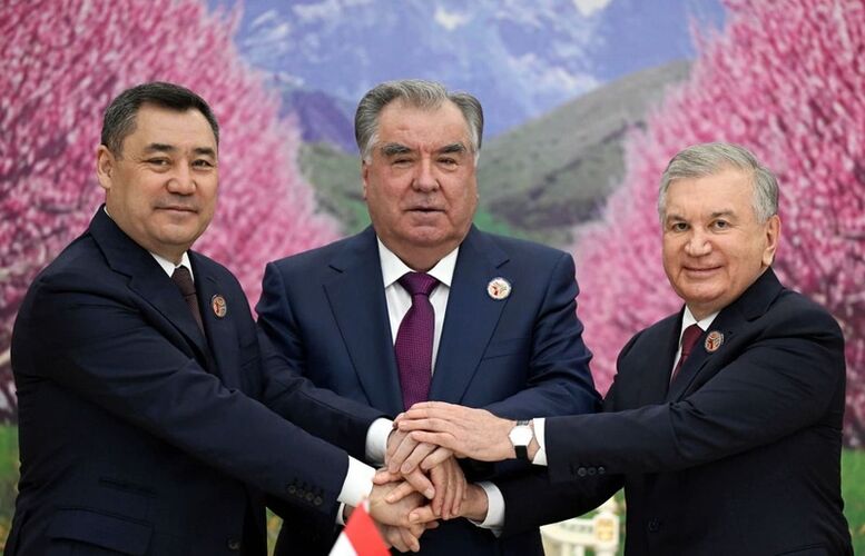 В конце марта глава государства отправился в Худжанд (РТ), где состоялся трехсторонний саммит лидеров трех стран — Кыргызстана, Таджикистана и Узбекистана, основной целью которого было подписание Договора о точке стыка государственных границ. Президенты приняли участие в церемонии открытия стелы на точке стыка госграниц в онлайн-формате. В начале следующего месяца — 4 апреля — Садыр Жапаров принял участие в заседании первого саммита «Центральная Азия — Европейский союз» в Самарканде. Также он провел переговоры с президентом Европейского банка реконструкции и развития Одиль Рено-Бассо, главой Европейской комиссии Урсулой фон дер Ляйен, президентом Европейского совета Антониу Коштой и лидером Узбекистана Шавкатом Мирзиеевым. Кроме этого, выступил на международном форуме «Центральная Азия перед лицом глобальных климатических угроз: солидарность ради общего процветания».
