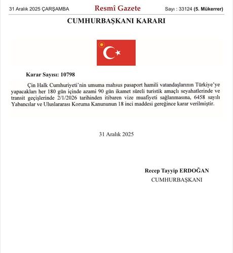 Турция ввела режим безвизового въезда для граждан Китая, имеющих обычные паспорта и въезжающих в целях туризма и транзита. Президент Реджеп Тайип Эрдоган подписал соответствующий указ.