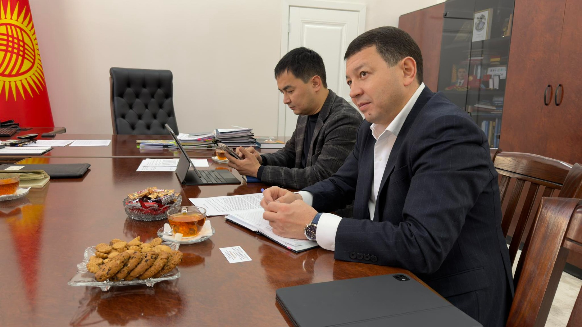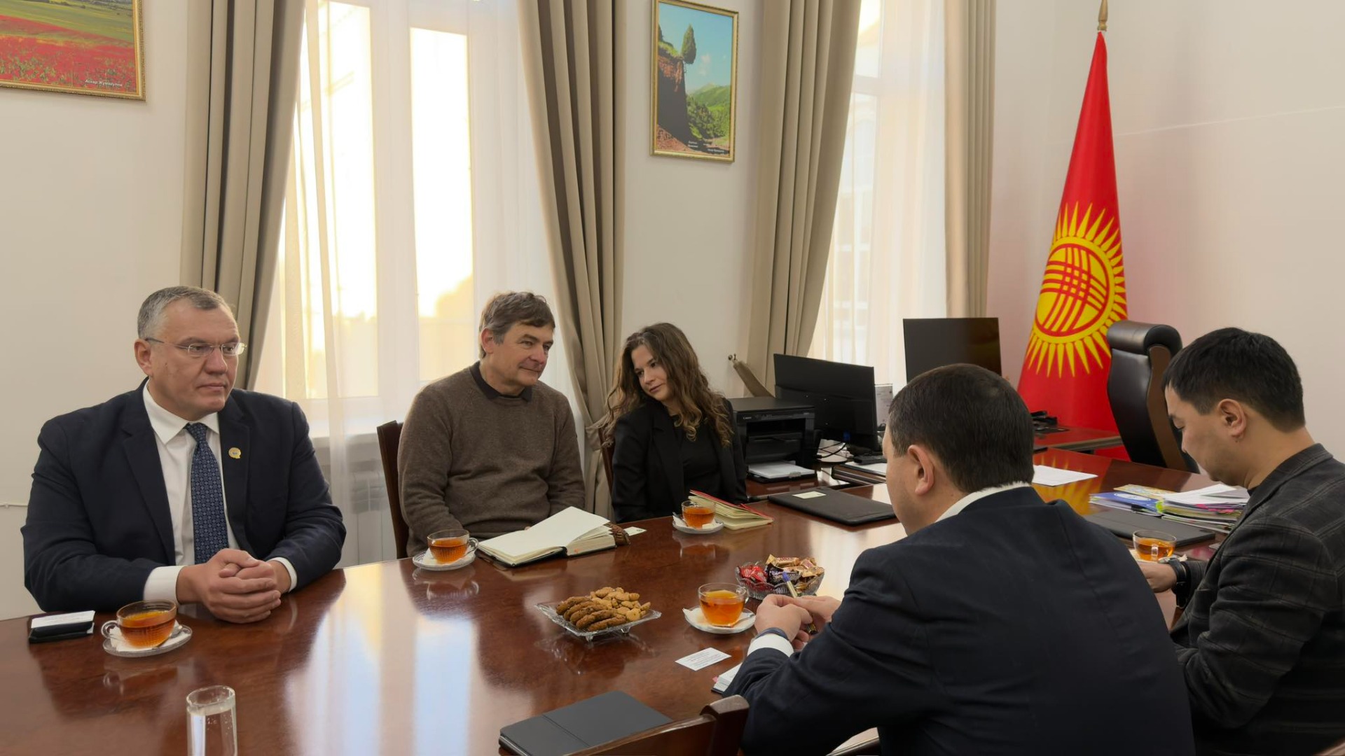 Накануне министр культуры, информации и молодежной политики КР Мирбек Мамбеталиев провел встречу с международной группой экспертов, прибывших в Кыргызстан по объекту Всемирного наследия ЮНЕСКО «Священная гора — Сулайман Тоо».