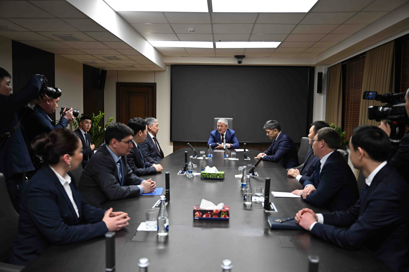 Председатель кабинета министров Адылбек Касымалиев представил коллективу Национального банка нового председателя Алмаза Бакетаева.