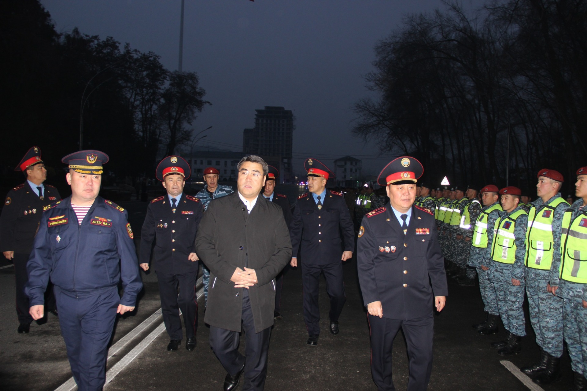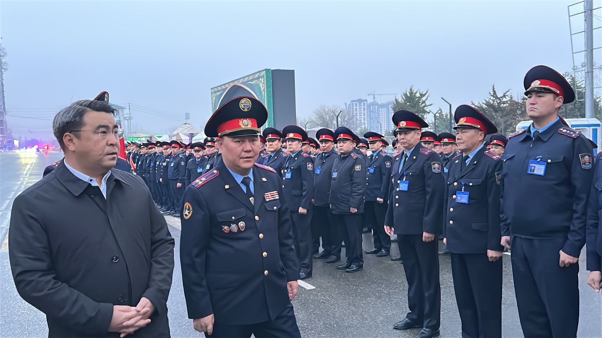 В церемонии также приняли участие мэр города Жанар Акаев и начальник УВД Оша Дамирбек Исаков. Руководители проверили уровень готовности подразделений, пообщались с личным составом и дали соответствующие указания.