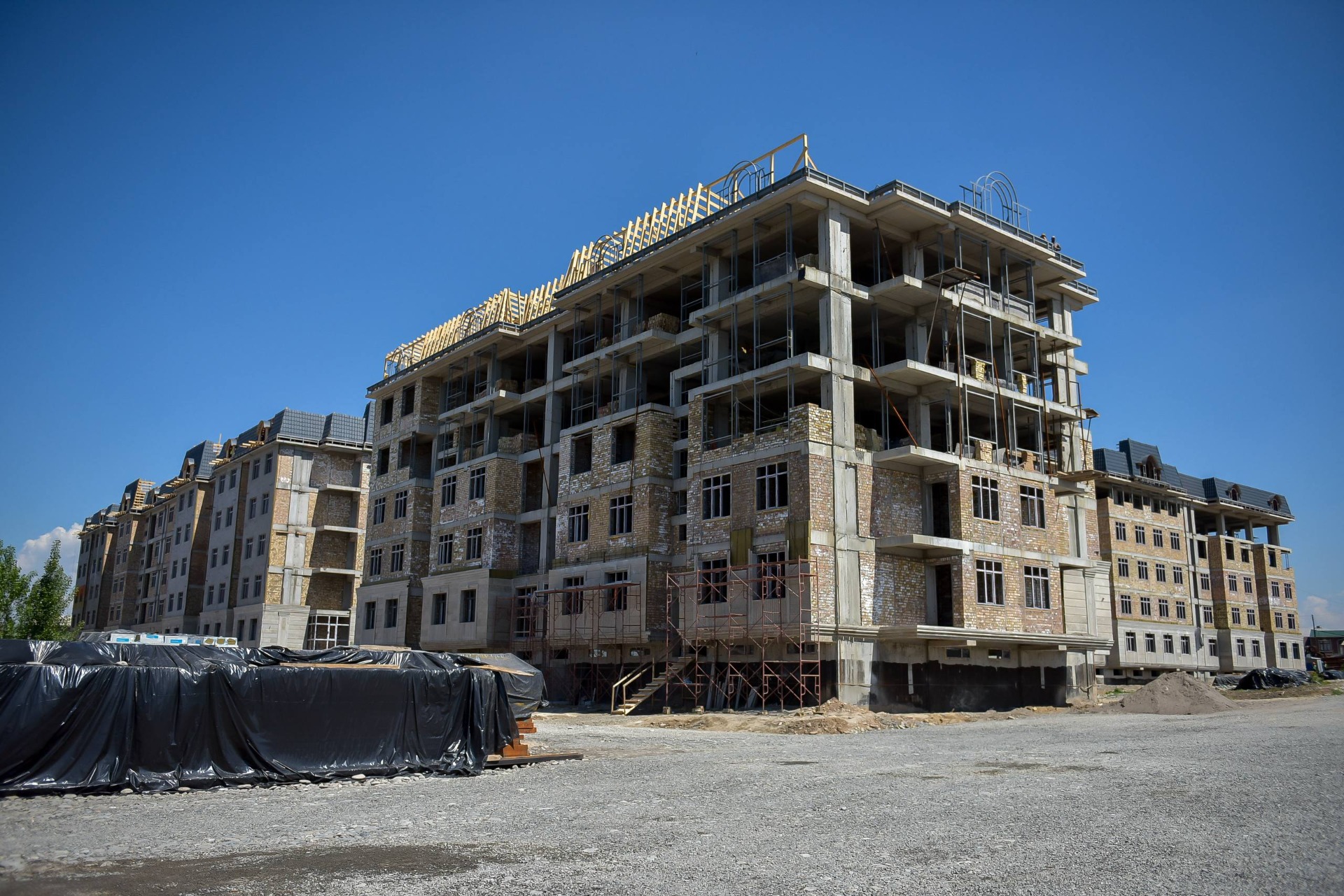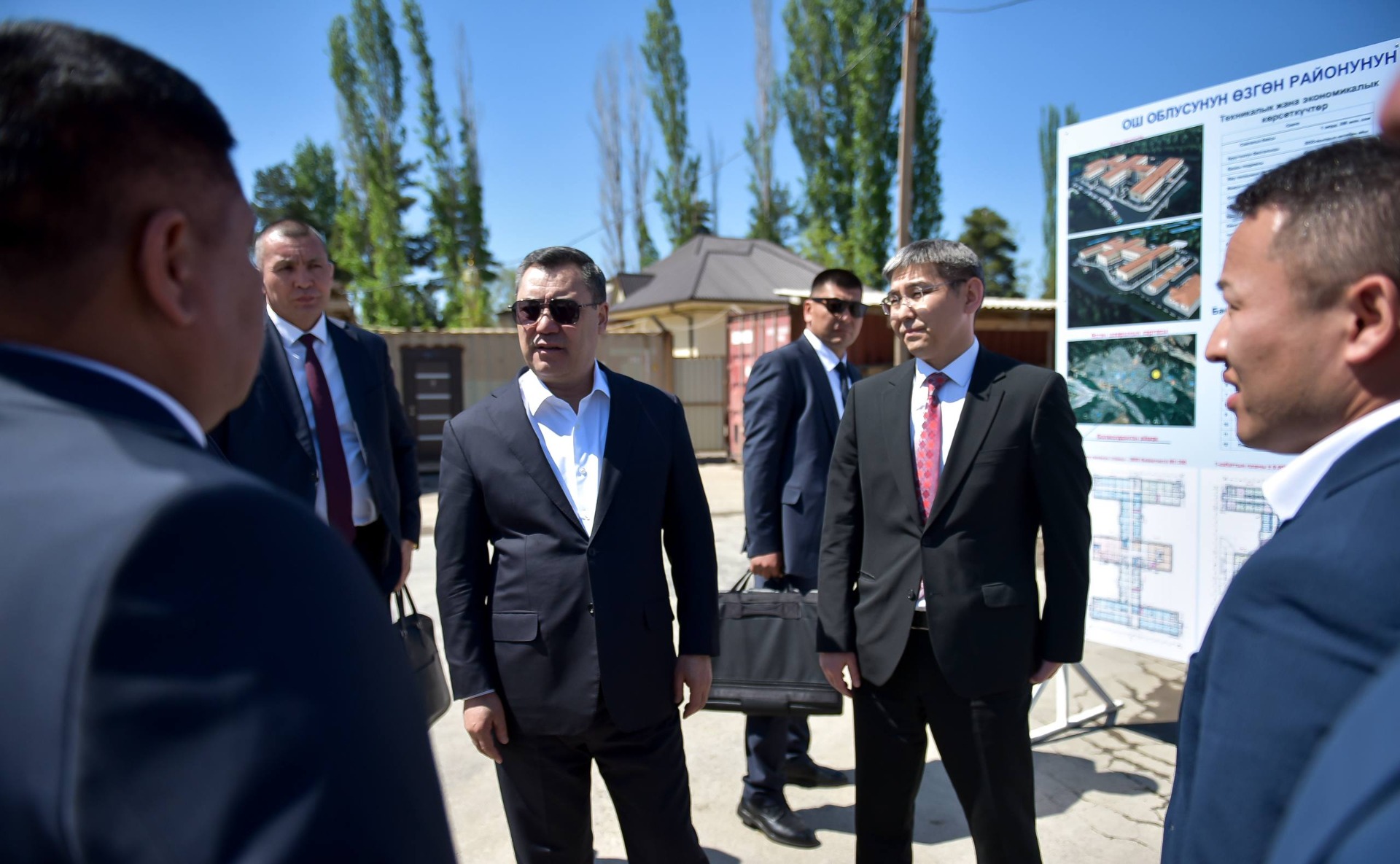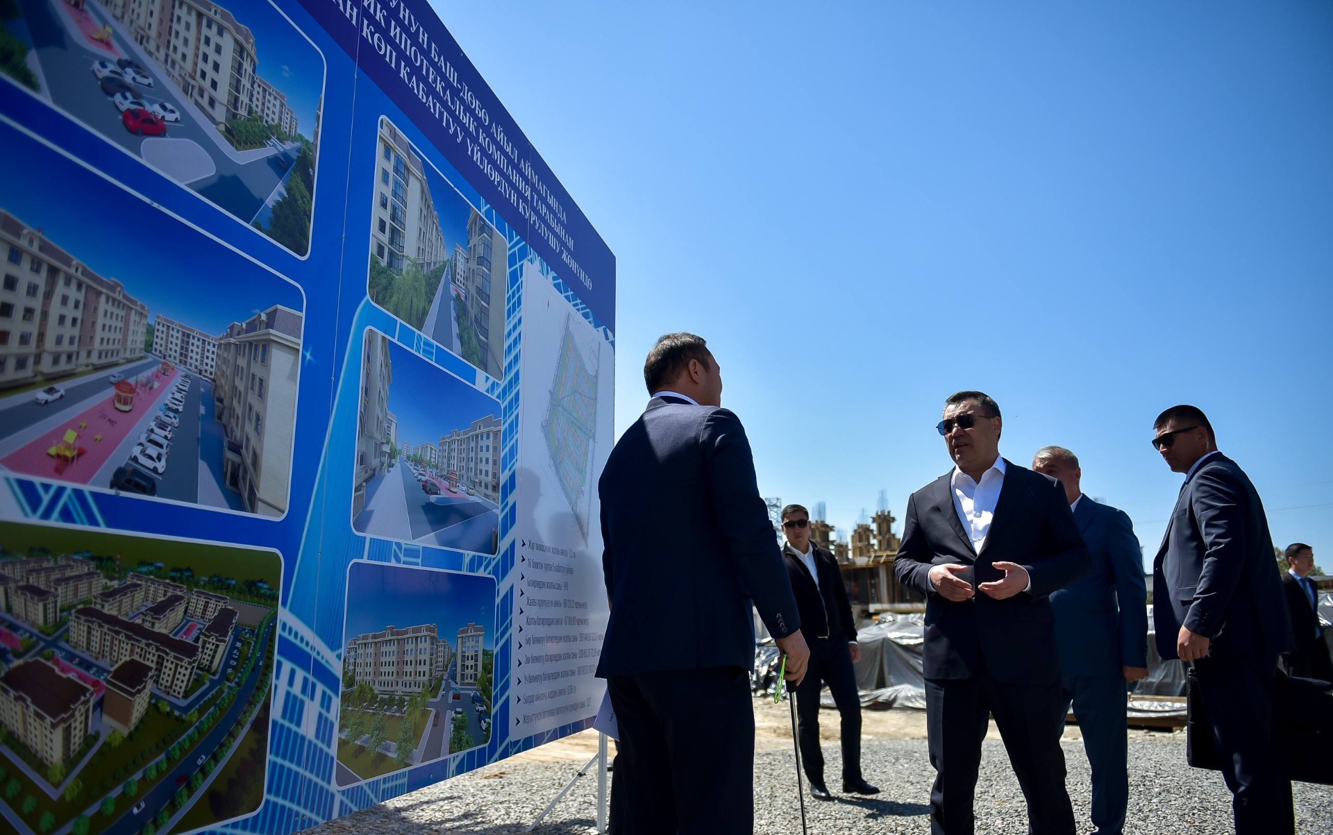 Далее президент осмотрел жилые комплексы, строящиеся Государственной ипотечной компанией в Баш-Добоском айыльном аймаке.