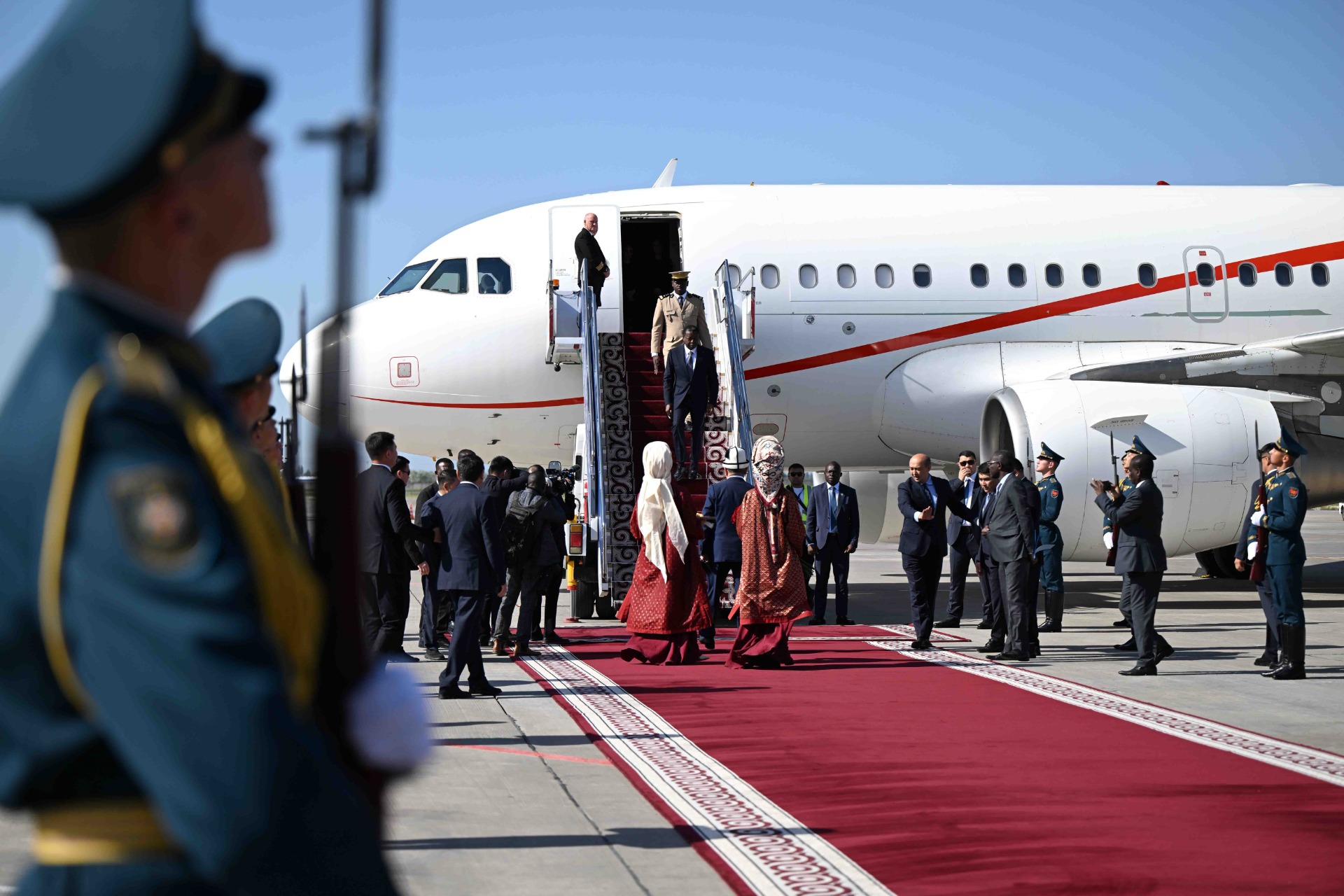 В международном аэропорту «Манас» высокого гостя встретил председатель кабинета министров Адылбек Касымалиев. В честь визита подняты государственные флаги двух стран и выстроен почетный караул.