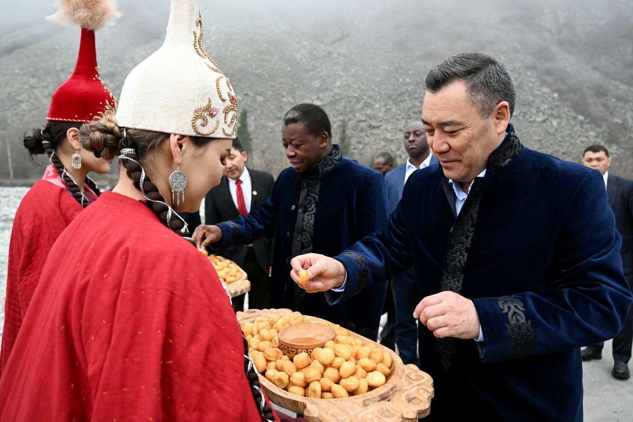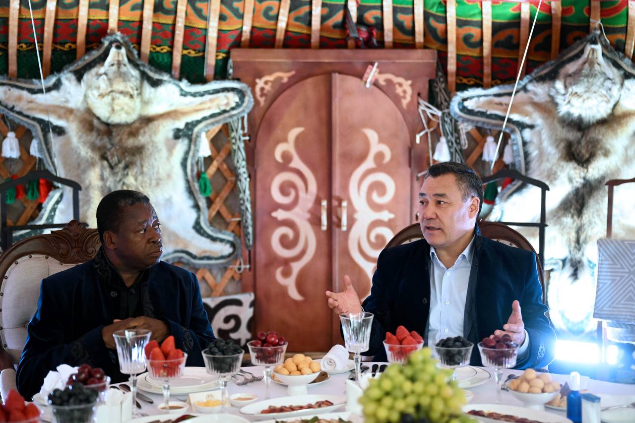 В ходе мероприятия Садыр Жапаров преподнес Фору Эссозимна Гнассингбе кыргызский музыкальный инструмент — комуз, а также угостил его традиционными этнонапитками.
