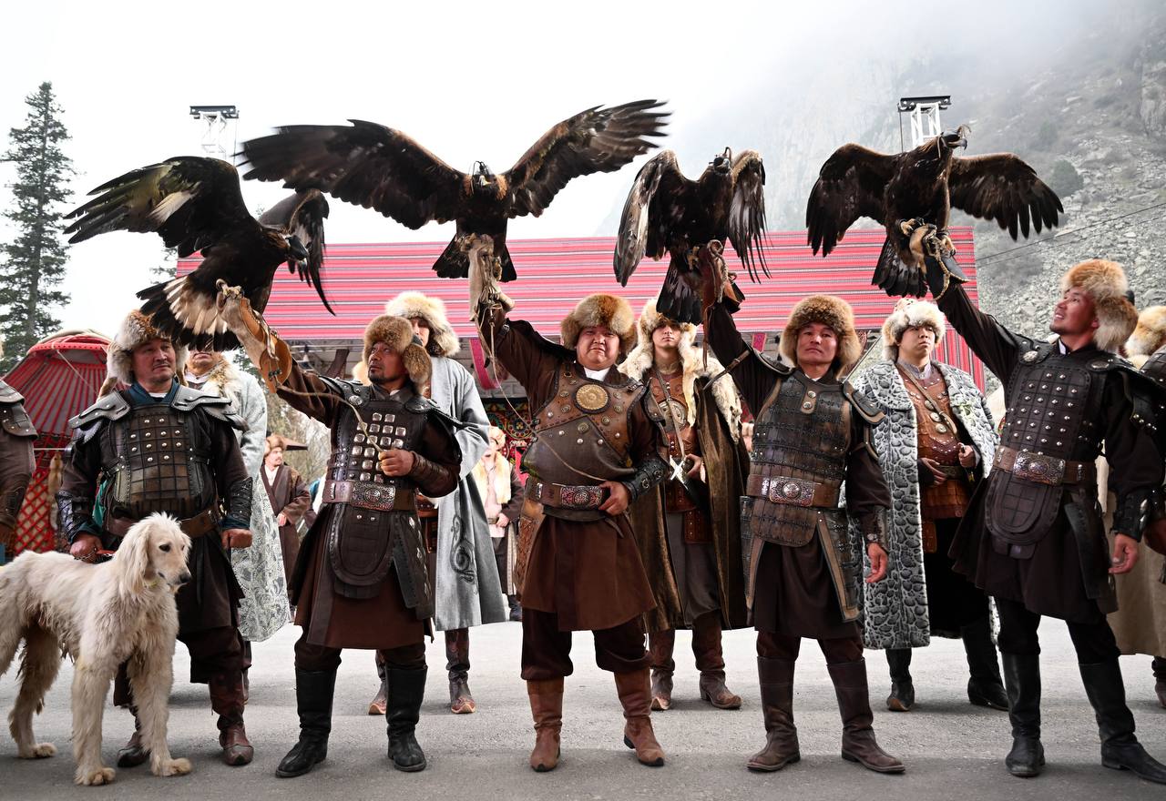 Также внимание гостей привлекли тайганы — национальная порода охотничьих собак, ловчие орлы, а также традиционные войлочные ковры — шырдаки.